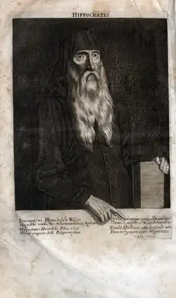 Hipócrates é creditado como a primeira pessoa a acreditar que as doenças eram causadas naturalmente, não por superstição e deuses.[15][16][17][18] Foi reconhecido pelos discípulos de Pitágoras por aliar a filosofia e a medicina.[15] Separou a disciplina da medicina da religião, acreditando e argumentando que a doença não era um castigo infligido pelos deuses, mas antes o produto dos factores ambientais, da dieta e dos hábitos de vida. Não existe uma única menção a uma doença mística em todo o Corpus Hipocrático. No entanto, Hipócrates tinha muitas convicções baseadas em anatomia e fisiologia incorretas, como por exemplo humorismo.[16][17][18]