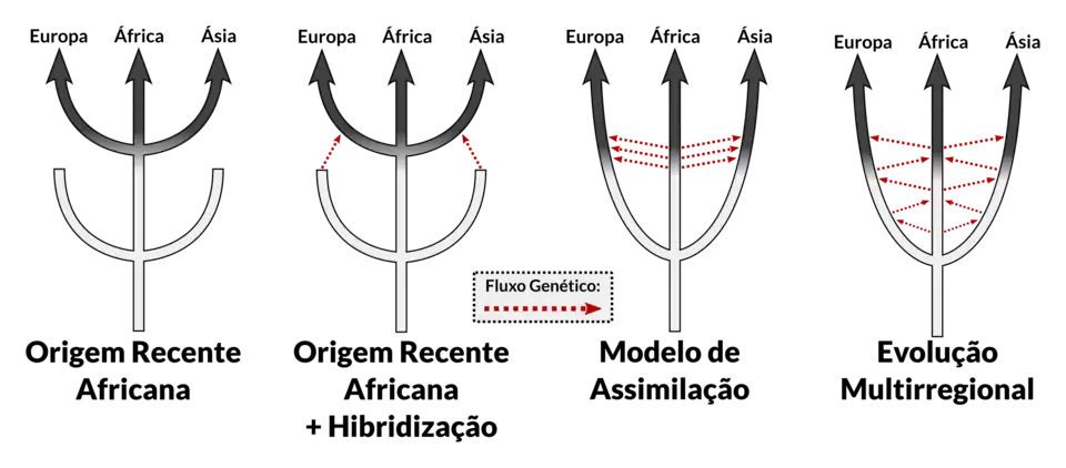 Até 2010, a discussão sobre hibridação entre humanos modernos e Neandertais se baseava em traços anatômicos observados no registro fóssil e carecia de bases sólidas, com o trabalho publicado em 2003 por Erik Trinkaus e pares, que aprontava características Neandertais em um fóssil humano encontrado em Oase, Romênia.[34] Porém, em 2010 foram publicados dois trabalhos independentes que, através de análises genéticas genômicas possibilitadas pelo método de "Sequenciamento de Nova Geração", apontavam a presença de cerca de 2,5% de DNA Neandertal nas populações Humana não Africanas e aproximadamente 5% de DNA Denisovano em populações nativas da Austrália e Nova Guiné.[35][36] Essas publicações abriram uma nova epoca no debate sobre as origens humanas, tirando a dominânancia da hipótese de uma origem exclusivamente africana e deslocando o consenso para o que pode se considerar o modelo "Origem Recente Africana + Hibridação".[37]