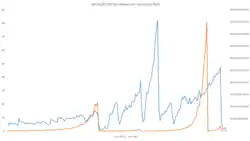 | Taxas de inflação mensais mais altas da história[19][20] | |||||||