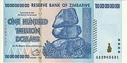 - ↑ «Zimbábue chegou a ter nota de 100 trilhões para combater a inflação». R7.com. 9 de dezembro de 2017. Consultado em 24 de janeiro de 2020