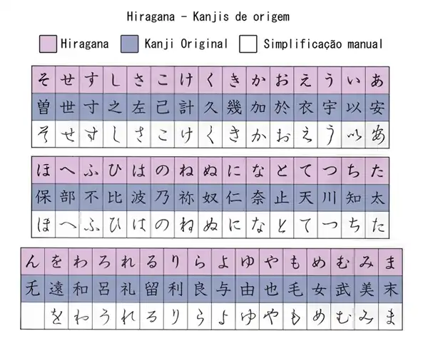- ↑ «O surgimento do hiragana e katakana - Nippo-Brasil». www.nippo.com.br. Consultado em 19 de outubro de 2020