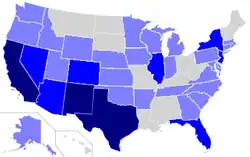 As oficinas do censo estadunidense tinham registrado, em 1 de julho de 2007, uma população de 45,5 milhões de hispanofalantes nos Estados Unidos da América, o que equivale a 15,1% da população total (esta cifra não contabiliza os hispanos em situação ilegal, que somados superariam os 50 milhões). Segundo um estudo das oficinas do censo para 2007, 12,3% da população estadunidense é hispanófono nativo (já que falam espanhol no seio familiar).[4] Do resto (até completar o 15,1%), a maioria fala espanhol como segunda língua com maior ou menor conhecimento, somando um total de mais de 40 milhões de hispanófonos.[5]
