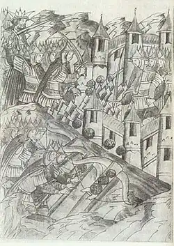 A vasta horda mongol de aproximadamente 150 mil arqueiros montados, comandada por Batu Cã (neto de Gengis Cã) e Subedei, cruzou o Rio Volga e invadiu a Bulgária do Volga, no outono de 1236. Levou um ano para acabar com a resistência dos Búlgaros do Volga, quipechaques e Alanos.