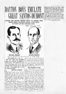Em 17 de dezembro de 1903, numa praia da Carolina do Norte perto de Kitty Hawk, os irmãos Wright efetuaram aquele que seria considerado como o primeiro voo de um aparelho voador controlado, motorizado e "mais pesado que o ar".[4]