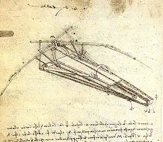 Muito provavelmente foi o artista e inventor italiano Leonardo da Vinci a primeira pessoa a se dedicar seriamente a projetar uma máquina capaz de voar carregando um ser humano. Tais máquinas eram planadores e ornitópteros: máquinas que usavam o mesmo mecanismo usado por pássaros para voar - através do movimento constante das asas para cima e para baixo. Da Vinci nunca construiu tais máquinas mas seus desenhos ficaram preservados e, posteriormente, já no século XIX e século XX um de seus desenhos - um planador - foi considerado notável. Em um estudo recente um protótipo baseado no desenho deste planador foi criado e, de fato, seria capaz de planar. Porém ao interpretar o desenho do planador, algumas ideias modernas de aerodinâmica foram também utilizadas pelos pesquisadores. Mesmo assim este desenho é considerado o primeiro esboço sério de uma aeronave tripulada.