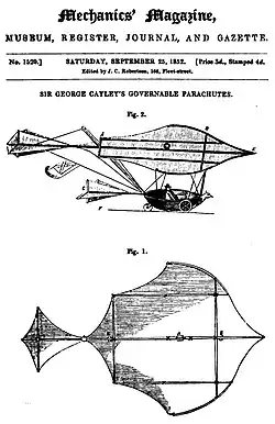 Primeiramente vieram os planadores, máquinas capazes de sustentar voo controlado por algum tempo. Em 1799 o inventor inglês George Cayley desenhou um planador relativamente moderno que tinha uma cauda para controle, e o local onde o piloto ficava dentro da aeronave abaixo do centro de pressão, dando assim estabilidade à aeronave. Cayley construiu um protótipo e fez seus primeiros voos planados em 1804, sem passageiro. Durante as cinco décadas seguintes, Cayley trabalhou no seu protótipo tempo durante o qual ele deduziu muitas das leis básicas de aerodinâmica. Em 1853 um amigo de Cayley fez um voo planado de curta duração em Brompton-by-Sawdon, Inglaterra. Cayley é considerado atualmente o fundador da ciência física de aerodinâmica, tendo sido a primeira pessoa a descrever uma aeronave de asa fixa propulsionada por motores.