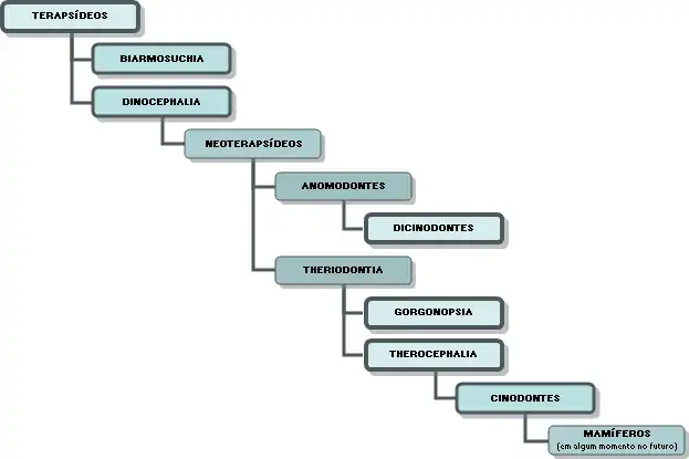 Árvore genealógica terápsida;[12] apenas com aqueles que são mais relevantes para a evolução dos mamíferos estão descritos abaixo.