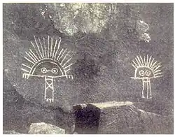 Também na região foram encontrados desenhos na Toca do Boqueirão, também em Pedra Furada, que parecem representar uma cena de ataque dos terríveis felinos que já habitaram o continente. As concepções dos atuais índios que habitam a região nordeste do país, a exemplo dos cariris, apesar de bastante modificadas, ainda podem se constituir num elemento útil para decifrar tais representações com uma estratégia conjetural. Uma interpretação sobre os desenhos da figura humana desses povos revela uma surpreendente complexidade que pode muito bem corresponder a um mapa das sensações corporais e/ou uma concepção de corpo e espírito. Os encantados são descritos pelos cariris, em geral, como homens descomunais, ferozes e implacáveis, de feição rude e olhos esbugalhados, verdadeiramente assustadores, segundo o antropólogo Nascimento, que estudou em sua tese para Mestrado na Universidade Federal da Bahia os rituais e identificação étnica dos índios do nordeste a partir das concepções de um grupo remanescente - os cariris de Mirandela (Bahia) em 1994.[60]