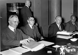 - ↑ Taylor, Telford (1992). The Anatomy of the Nuremberg Trials: A Personal Memoir. New York: Alfred A. Knopf. pp. 587, 591–92. ISBN 0-394-58355-8