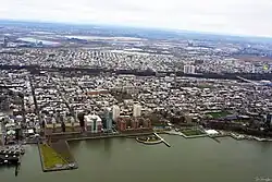 Hoboken fica separada de Manhattan, Nova Iorque pelo rio Hudson.