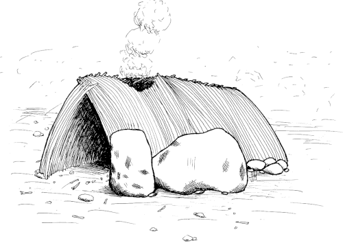 Em 1962, um círculo feito com rochas vulcânicas, medindo 366 cm × 427 cm × 30 cm, foi descoberto em Olduvai Gorge, na Tanzânia. Com o espaçamento de 61-76 cm entre elas, as rochas foram empilhadas até 15–23 cm de altura. A paleoantropologista britânica Mary Leakey sugeriu que as pilhas de rochas foram usados para apoiar estacas cravadas no solo, possivelmente para apoiar um corta-vento ou uma cabana. Algumas tribos nômades dos dias modernos constroem paredões rochosos semelhantes para construir abrigos temporários, usando galhos verticais curvados como postes e usando grama ou couro animal como um tela.[94] Datado de 1,75 milhões de anos, é a mais antiga evidência reivindicada de arquitetura.