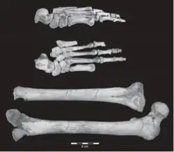 - ↑ Jungers, W.L.; Larson, S.G.; Harcourt-Smith, W.; Morwood, M.J.; Sutikna, T.; Due Awe, Rokhus; Djubiantono, T. (novembro de 2009). «Descriptions of the lower limb skeleton of Homo floresiensis». Journal of Human Evolution (5): 538–554. ISSN 0047-2484. doi:10.1016/j.jhevol.2008.08.014. Consultado em 15 de julho de 2021