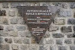 Somente em 1985, a perseguição nazista de homossexuais foi oficialmente reconhecida pela primeira vez em um discurso do presidente da Alemanha Ocidental, Richard von Weizsäcker[61][174]. Em 2002, a Alemanha anulou os julgamentos da era nazista sob o Parágrafo 175[175], e em 2017, as vítimas foram oferecidas compensação[176]. A anulação dos julgamentos em 2017 e a compensação foram estendidas aos homens que foram condenados após 1945, tornando este o único caso em que o estado alemão ofereceu reparações por atos que não eram considerados "injustiça típica do nazismo" e que não seriam possíveis em um estado democrático[177].