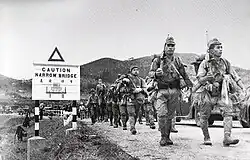 Soldados do Império do Japão entram no território de Hong Kong, durante a Segunda Guerra Mundial