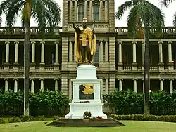 Do topo, em sentido horário: Centro, Pearl Harbor, estátua do Rei Kamehameha I em frente ao Aliiolani Hale, Diamond Head, vista da praia de Waikīkī e Honolulu Hale (Prefeitura) | |