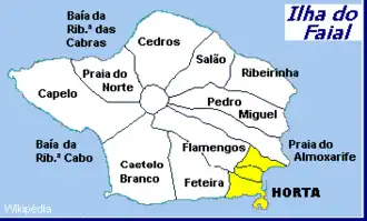 É também a sede do Município da Horta[3] que ocupa toda a superfície da Ilha do Faial, com uma superfície total de 172,43 km² e 14 331 habitantes (em 2021), tendo assim uma densidade populacional de 83,11 hab./km². O município mais próximo é o da Madalena, na Ilha do Pico.