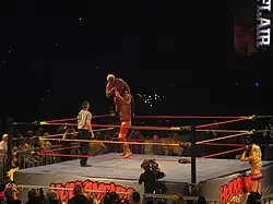 ![]() Hogan em 1985, no auge da "Hulkamania". | |