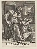 O estudo da gramática da língua latina também desenvolveu-se numa tradição. Eruditos como Marco Terêncio Varrão, que elaborou no século I um estudo com ênfase nas categorias formais da língua, enquanto que Élio Donato e Prisciano dedicaram-se à categorias semânticas. As obras de Donato, Ars minor e Ars maior, escritas no século IV, foram influentes até o fim da primeira metade do período medieval, enquanto que a obra Institutiones grammaticae, de Prisciano, foi redescoberta durante o renascimento carolíngio e inspirou a linguística europeia com seu estudo taxonomico das palavras.[8]