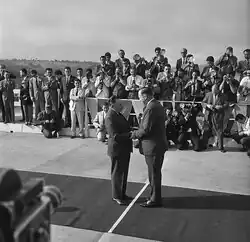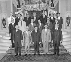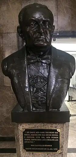 Humberto de Alencar Castelo Branco[1][nb 1] GOA • GColIH (Fortaleza, 20 de setembro de 1897[2][3]Fortaleza, 18 de julho de 1967) foi um militar e político brasileiro. Foi o 26.º presidente do Brasil, o primeiro ditador do período da ditadura militar, tendo sido um dos articuladores do golpe militar de 1964. Os principais objetivos da intervenção militar eram acabar com os nacionalistas reformistas, representados pelo Partido Trabalhista Brasileiro (PTB) e o projeto das Reformas de Base do governo João Goulart, e institucionalizar a ditadura militar através dos atos institucionais. Uma das primeiras medidas de seu governo foi a promulgação do Ato Institucional 2, que aboliu o pluripartidarismo no país e concedeu poderes ao Presidente da República para cassar mandatos de deputados e convocar eleições indiretas.[4] Na política externa brasileira passou a buscar apoio econômico, político e militar nos Estados Unidos. Era filho do general Cândido Borges Castelo Branco, 6.º neto do 11.º Senhor de Pombeiro e de sua mulher a 9.ª Senhora de Belas, Antonieta de Alencar Gurgel, membro da família do escritor José de Alencar e descendente de Toussaint Gurgel.[5]