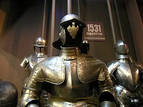 A partir de 1570 os hussardos poloneses abandonaram o uso de escudos e tornaram as armaduras mais pesadas. Além do sabre e da lança, eles também se equipavam com uma ou duas pistolas e um koncerz — uma longa espada (de até dois metros) usadas no lugar das lanças quando estas se quebravam.