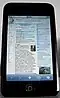 | Terceira | 32 e 64 GB | funcionalidade Nike+ adicionada; encosto de trás de cromo mais fino; funcionalidade Genius; atualização do software iPhone 2.1 para iPod touch; novos botões de volume integrado e alto-falante interno; e acelerômetro incluído. Mais leve que o modelo prévio. Bateria durando mais horas. | Dock/USB | 9 de setembro de 2009 | $299, $399 | €279, €369 | 10.4/XP | ||