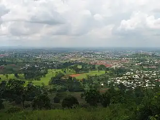 A cidade encontra-se localizada em um conjunto de colinas dominadas pelos montes Mbam Minkom (1295 m) e Nkolodom (1221 m), no nordeste, e o Eloumden (1159 m) no sudeste.
