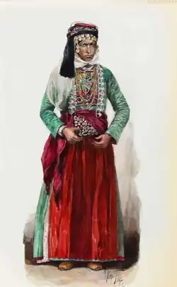 Gravura de mulher iazidi da Geórgia, no Museu Caucasiano de Tiblíssi, da autoria de Max Tilke