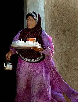 Uma mulher iazidi oferece chá a soldados norte-americanos perto do Monte Sinjar, 2006
