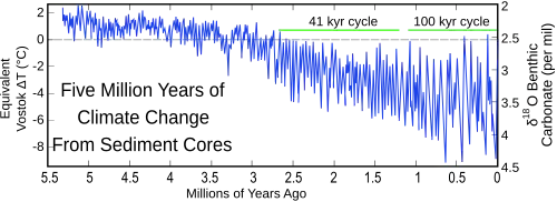 - A transição geológica Plioceno—Pleistoceno (clima altamente glacial)