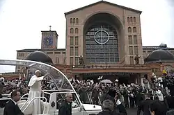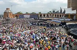 Entre as tradições populares do catolicismo no Brasil estão as peregrinações à Basílica de Nossa Senhora Aparecida, o quarto santuário mariano mais visitado do mundo,[65] que é capaz de abrigar até 45.000 fiéis.[66] Em 1930, o Papa Pio XI declarou Nossa Senhora Aparecida como Rainha e Padroeira do Brasil.[67]