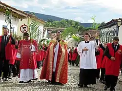 O catolicismo tem sido a principal religião do Brasil desde o século XVI. Ela foi introduzida por missionários jesuítas que acompanharam os colonizadores portugueses nas terras do país recém-descoberto.[carece de fontes?] O Brasil é considerado o maior país do mundo em número absoluto de católicos nominais,[10] sua hegemonia deve ser relativizada devido ao grande sincretismo religioso existente no país.[carece de fontes?] Entre as tradições populares do catolicismo no Brasil, estão a peregrinação a Basílica de Nossa Senhora Aparecida, que se pode ser feita pelo conhecido Caminho da Fé,[11] além de outras festas católicas importantes, como o Círio de Nazaré — esta a maior manifestação religiosa do país —,[carece de fontes?] Festa do Divino Espírito Santo[carece de fontes?] e a Festa do Divino Pai Eterno.[12] Ao passar do século XX, o interesse pelo catolicismo no país decaiu, tendo visto aumento de outras denominações cristãs, de outras religiosidades não cristãs e dos irreligiosos.[13] Um reflexo disso é o grande número de pessoas que se intitulam católicos não praticantes.[14] Houve também a criação da Igreja Católica Apostólica Brasileira pelo bispo excomungado Carlos Duarte Costa.[15] Um dos bispos que ele consagrou mais tarde se reconciliaria como bispo com a Igreja Católica brasileira e em geral, sem receber nenhuma ordenação condicional.