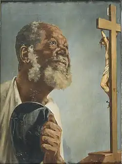 Negro com Chapéu na Mão Olhando Para um Crucifixo, pintura de Adrien Henri Vital van Emelen.
