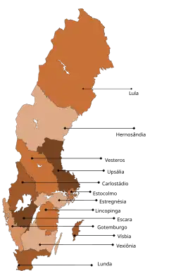 | Dioceses | Brasão e nome sueco | Sede episcopal |