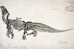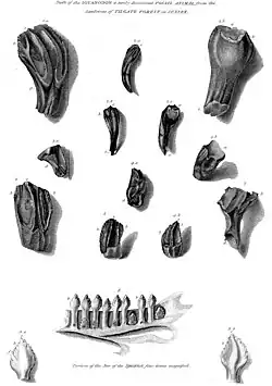 - ↑ Mantell, Gideon A. (1848). «On the structure of the jaws and teeth of the Iguanodon». Philosophical Transactions of the Royal Society of London. 138: 183–202. JSTOR 111004. doi:10.1098/rstl.1848.0013