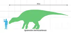 Iguanodon, do grego "dente de iguana", também conhecido como iguanodonte, é um gênero de dinossauro herbívoro e bípede que viveu no início do período Cretáceo Inferior. Media em torno de 9 metros de comprimento, pesava cerca de 4, 5 toneladas. Conhecem-se vestígios de Iguanodon do Reino Unido, França, Bélgica, Portugal,[1] Estados Unidos, Brasil, República Checa e Macedônia do Norte.