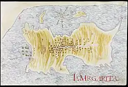 Mapa espanhol da ilha Margarita. Nicolás de Cardona, 1632.