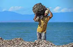Pescador de "Pata e Cabra" (Arca zebra) em Punta de Piedras.
