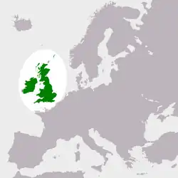 ![]() Localização das Ilhas Britânicas (em verde) na Europa. | |