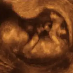 O ultrassom é um exame que utiliza ondas sonoras de alta frequência e banda larga (megahertz) que são refletidas pelo tecido em diferentes graus, para produzir imagens em tempo real, sem emitir radiação ionizante. As imagens não são tão nítidas como uma TC ou uma RMN, mas ainda é muito usado por ser econômica, segura e rápida.[11]