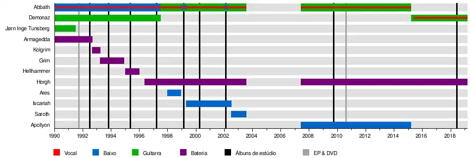 | Ex-integrantes | Abbath Armagedda Iscariah Jörn Tonsberg Apollyon |