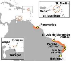 Nova Holanda foi estabelecida pela Companhia Neerlandesa das Índias Ocidentais em 1630 com a conquista da capitania de Pernambuco. Entre 1633 e 1641, a companhia expandiu a colônia, que abrangeu a região Nordeste do Brasil com exceção da Bahia. O controle do Nordeste brasileiro permitiu às Províncias Unidas dominar completamente o mercado de açúcar na Europa,[11] gerando muitas rendas para a República Holandesa, até que o açúcar brasileiro começou a declinar face à competição das outras colônias europeias nas Antilhas.[12] Foi nesse contexto que, nas negociações com Portugal, a Holanda passou a considerar mais útil desistir de suas pretensões aos territórios conquistados e perdidos no Brasil em troca de exigir certos benefícios comerciais e monetários concedidos pela coroa portuguesa, abrindo um caminho para aceitar formalmente a perda do território depois dele ter sido reconquistado pelas forças luso-brasileiras entre 1644 em 1654.[13]