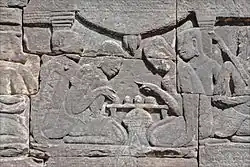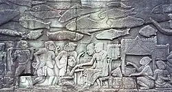 Muito do que se sabe sobre a antiga sociedade quemer vem de muitos baixos-relevos e também dos relatos chineses de como Zhou Daguan, que fornecem informações sobre o Camboja do século XIII. Os baixos-relevos dos templos de Angkor, como os de Bayon, descrevem a vida cotidiana do antigo Império Quemer, incluindo cenas da vida no palácio, batalhas navais no rio ou lagos e cenas comuns do mercado.