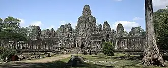 Jaiavarmã VII permanece como o último dos grandes rajás de Angkor, não apenas por causa de sua guerra bem-sucedida contra os chans, mas também porque ele não era um governante tirânico como seus predecessores imediatos. Ele unificou o império e executou projetos de construção notáveis. A nova capital, agora chamada de Angkor Thom (literalmente: "Grande Cidade"), foi construída. No centro, o rajá (ele mesmo um seguidor do budismo maaiana) construiu como o templo estatal de Bayon,[10]:378–382 com torres com faces do bodisatva avalokiteshvara, cada uma com vários metros de altura, esculpidas em pedra. Outros templos importantes construídos sob Jaiavarmã VII foram Ta Prohm para sua mãe, Preah Khan para seu pai,:388–389 Banteay Kdei e Neak Pean, bem como o reservatório de Srah Srang. Uma extensa rede de estradas foi construída ligando todas as cidades do império, com casas de repouso construídas para viajantes e um total de 102 hospitais estabelecidos em todo o seu reino.[9]:173, 176