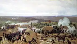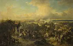 Uma pintura representando a Batalha de Narva (1700) na Grande Guerra do Norte
