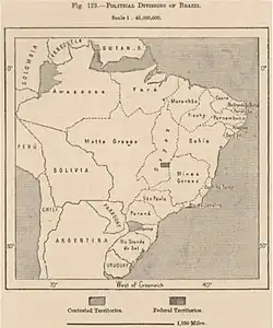 Império do Brasil[3] (denominado pela historiografia também como Brasil Império, Brasil Imperial ou Brasil Monárquico) foi um Estado que existiu no século XIX e que compreendia, aproximadamente, até 1825, o território que forma o Brasil (sem o Acre) e o Uruguai atuais. Seu governo era uma monarquia constitucional parlamentar representativa, com a ascensão ao trono de dois imperadores, Pedro I e seu filho, Pedro II. De uma colônia do Reino de Portugal, o Brasil tornou-se a sede do Império Português em 1808, quando o então Príncipe Regente de Portugal, João VI, reagiu à invasão napoleônica de Portugal estabelecendo a si mesmo e seu governo no Rio de Janeiro. João VI, em decorrência da Revolução do Porto, retornou a Portugal em 1821, deixando seu filho e herdeiro, Pedro, para governar o Reino do Brasil como regente. Em 7 de setembro de 1822, Pedro proclamou a independência do Brasil e foi aclamado em 12 de outubro do mesmo ano como Pedro I, primeiro imperador do Brasil, fato que antecedeu uma guerra contra Portugal, que reconheceu a independência em 1825, com a assinatura do Tratado do Rio de Janeiro.[4] O novo país era vasto, etnicamente diverso, porém pouco povoado.
