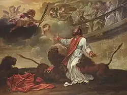 | Atribuições | um bispo rodeado por leões |