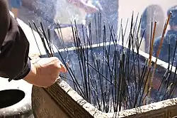 Incenso (em latim, incendere: "queimar") é composto por materiais aromáticos chamados bióticos (originado por seres vivos - no caso, plantas) que liberam fumaça perfumada quando queimados. O "incenso" refere-se à substância em si, mais do que o cheiro que ela produz. Ele é usado em cerimônias religiosas, rituais de purificação, aromaterapia, meditação, para a criação de um estado de espírito, e para mascarar algum mau odor.[1] O uso do incenso se originou no Antigo Egito, onde as resinas de goma e resinas oleosas de árvores aromáticas foram importadas das costas da Arábia e Somália para serem usadas em cerimônias religiosas.