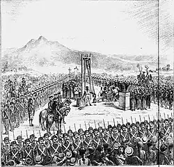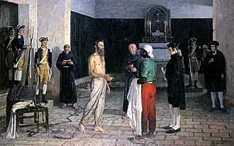 - ↑ O esquartejamento do corpo após o enforcamento era uma prática penal prevista para crimes considerados especialmente graves no Antigo Regime, tendo função simbólica de advertência pública e reafirmação da autoridade régia, mais do que de punição individual.