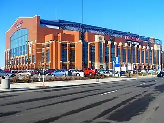 - ↑ «Demolition ends RCA Dome era in Indianapolis». ESPN.com. 20 de dezembro de 2008. Consultado em 3 de maio de 2018