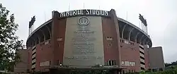 - ↑ «RCA Dome - History, Photos & More of the former NFL stadium of the Indianapolis Colts». Stadiums of Pro Football - Your Ticket to Every NFL Football Stadium (em inglês)